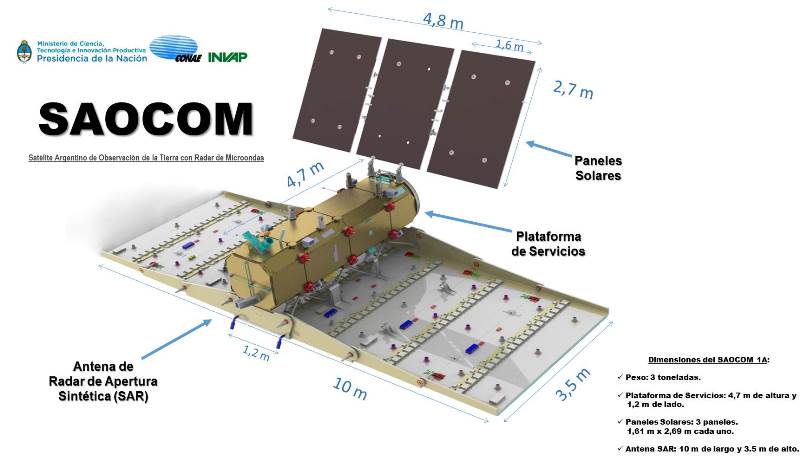 Formada por dos constelaciones de satélites, SAOCOM 1 y SAOCOM 2 y a su vez cada constelación integrada por dos satélites, SAOCOM 1A y SAOCOM 1B, y SAOCOM 2A y SAOCOM 2B. Esta misión llevará al espacio una compleja tecnología de observación de la Tierra mediante radar de apertura sintética (SAR) en banda L, especialmente diseñado para detectar la humedad del suelo. Esta información será utilizada en agricultura para elaborar mapas de riesgo de enfermedades de los cultivos (como el hongo fusarium, perjudicial para el trigo), para crear sistemas de aplicación eficiente de fertilizantes y desarrollar modelos hidrológicos de alerta temprana de inundaciones, especialmente sobre la región pampeana. Los satélites SAOCOM funcionarán en conjunto con cuatro satélites italianos en el Sistema Italo Argentino de Satélites para la Gestión de Emergencias (SIASGE), creado por la CONAE y la agencia espacial italiana ASI, para contribuir a la gestión de emergencias y el desarrollo económico mediante información de origen espacial. (Luis Piñeiro, corresponsal de Grupo Edefa en Argentina)