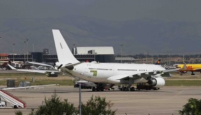 Fotografía: El futuro aparato de la RAAF, en Barajas, ya convertido en MRTT, poco antes de volar hasta Hamburgo para convertirse en transporte VIP. Foto: Julio Maíz/defensa.com.