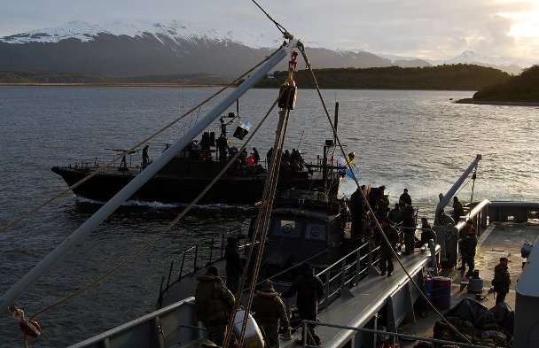 (defensa.com) Varios centenares hombres de los Batallones de Infantería de Marina N°4 y N°5 llevaron a cabo una operación anfibia en aguas del Canal Beagle junto a las unidades de la Agrupación Lanchas Rápidas en el marco del ejercicio Yamana X. Las actividades comenzaron con el embarco de dos patrullas de Infantería de Marina en las lanchas patrulleras ARA “Clorinda” y ARA “Barranqueras”, que realizaron una inserción en Puerto Almanza, desde donde tomaron posiciones en el terreno a la espera de los desembarcos posteriores. Navegaron por los pasos Mackinley y guaraní, además de efectuar navegación costera con rumbo a la zona de Punta Paraná, donde se realizó un nuevo desembarco de efectivos de combate. Luego se produjo el último de los desembarcos, para cumplimentar las tareas en el terreno y llevar a cabo el asalto final de las posiciones enemigas.