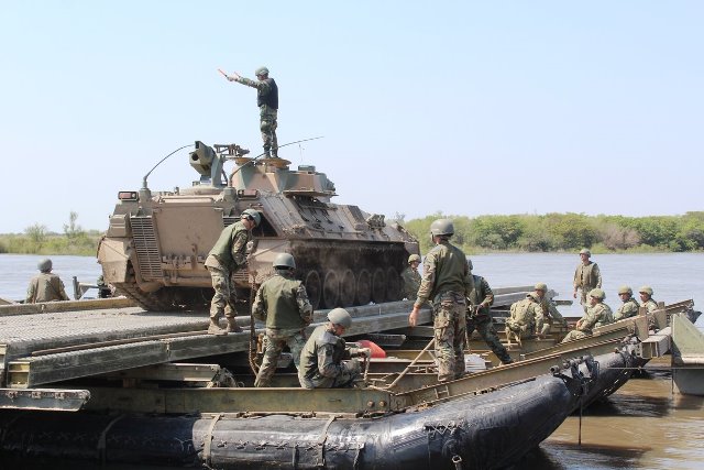 Unidades acorazadas del Ejército Argentino están llevando a cabo importantes desplazamientos y ejercitaciones en todo el país. La II Brigada Blindada se movilizó hasta el campo de instrucción “General Avalos”, en la provincia de Corrientes. En este sector se encuentra un gigantesco terreno de maniobras, plagado de formaciones acuáticas que dificultan la movilidad de los mecanizados, precariedad de rutas y caminos y otras dificultades de transporte que permiten poner a prueba a hombres y maquinas.