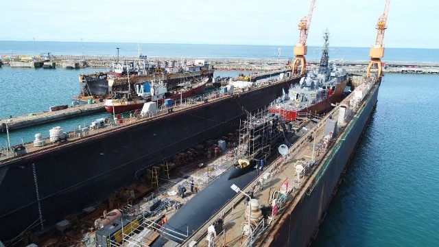 Como se puede apreciar en las fotografías, otra nave de la fuerza se encuentra ya en mantenimiento en la mima instalación, una corbeta A69 de la División de Patrullado Marítimo, que también tiene su asiento en esta ciudad. Los trabajos efectuados en otras reparaciones, la cercanía con la base naval y el trabajo conjunto de un centenar de técnicos y especialistas de la empresa, además de la colaboración de los efectivos castrenses, permitirán en poco tiempo contar con este veterano submarino en condiciones plenamente operativas. (Luis Piñeiro, corresponsal de Grupo Edefa en Argentina)