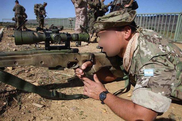 El Ejército Argentino seleccionó a un cabo primero y a un suboficial pertenecientes a las Compañías de Comandos, integradas en la denominada Agrupación de Fuerzas de Operaciones Especiales (AFOE). Una vez en la principal sede de la BRIPAC, la Base “Príncipe”, el Ejército de Tierra español les facilitó un fusil de precisión Accuracy International Arctic Warfare (AW) que dispara la munición 7,62X51 mm NATO, un sistema óptico para el observador, y dos fusiles de asalto Heckler & Koch G-36 de 5,56 mm para participar en el ejercicio.Con este equipo se están adiestrando con otras unidades españoles y de otros países de la OTAN.