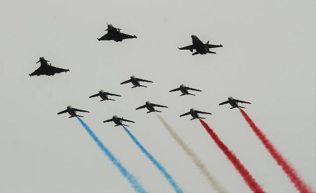 En la formación también destacó el Rafale, pintado con una trabajada decoración integral, que además de sus rayas de tigre también recuerda el 75 aniversario de la Batalla de Normandía. La aeronave hacía un guiño a uno de los bombarderos Douglas A-20 Boston que utilizó durante la Segunda Guerra Mundial, incluido el Día D, el entonces denominado Groupe de Bombardement “Lorraine” que años después pasaría a ser el actual EC 3/30 'Lorraine'. Además de llevar la pintura negra que llevaban aquellos bombarderos bimotores, portaba las bandas de invasión en las alas y el fuselaje, como las que llevaban los aparatos aliados durante la Campaña en Europa de 1944. (Julio Maíz Sanz)