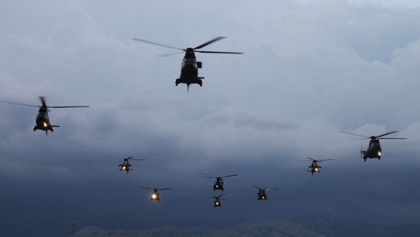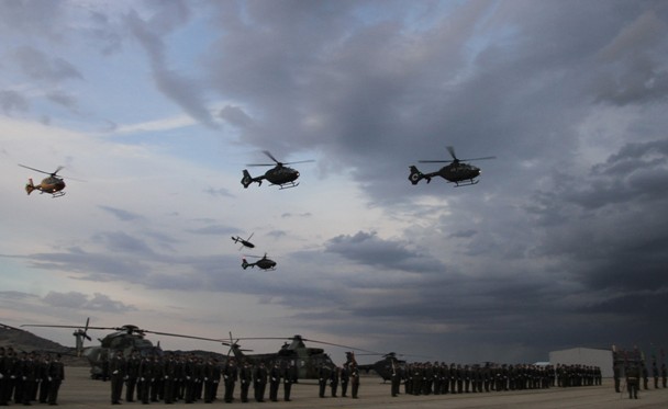 ·El desfile final constó de una formación aérea, compuesta por más de 20 helicópteros y otra terrestre.