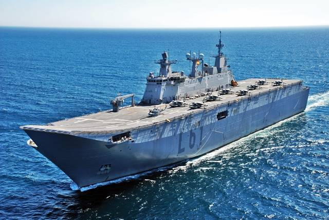 Al buque LHD le acompañará como escolta y apoyo la fragata “Blas de Lezo” (F-103), del tipo F-100, construida por Navantia. La larga navegación entrañará, tras cruzar el Mediterráneo, cruzar el Canal de Suez extremando las medidas de seguridad, a pesar de la férrea vigilancia que realizan las Fuerzas Armadas de Egipto. Una vez en el Mar Rojo, tras pasar los estrechos de Bab el Mandeb y de Ormuz, ya en el golfo pérsico los navíos de la Armada español se dirigirán a Kuwait, llegando muy posiblemente al puerto de Shuaiba, a unos 45 kilómetros de la ciudad de Kuwait. En esta ciudad portuaria cuenta Estados Unidos con una gran base logística, Camp Spearhead, a donde llega buena parte del material militar que utilizan en Irak.