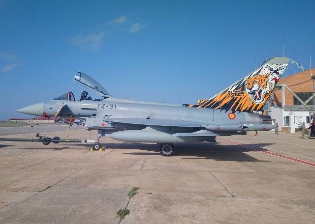 Aunque la Asociación Tigre, que organiza el NTM, exige que las unidades integrantes tengan un tigre en su insignia, es permisiva con otros felinos, como pumas, panteras, etc, el tigre dientes de sable es un espécimen que habitó en la península Ibérica hace 10.000 años. El Eurofighter pintado con este motivo junto a otros cuatro C.16 del Ejército del Aire y en torno a un centenar de miembros del Ala 14 están a punto de desplegarse en la base de la Fuerza Aérea de Polonia de Poznan-Krzesiny. Aunque los aparatos y sobre todo los pilotos los aporta uno de los Escuadrones de dicha Ala, el 142, la primera unidad del Ejército del Aire en integrarse en 1986 en el elitista grupo de unidades aéreas, al principio sólo de la OTAN, que forma la “Asociación Tigre”. El otro componente básico para la efectividad del destacamento es el nutrido grupo de personal técnico que forma parte del Grupo de Material del Ala 14.