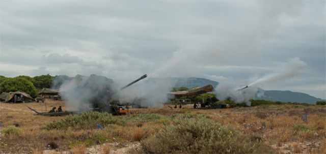 Fotografía: Disparos de obuses 155/52 mm de la UDACTA (Ejército de Tierra)