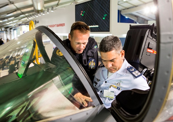 ·El piloto de pruebas de Saab Richard Ljungberg muestra el Gripen a una delegación brasileña.