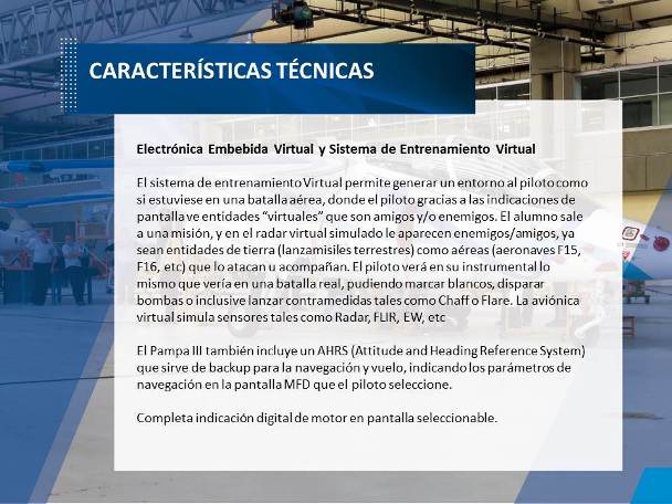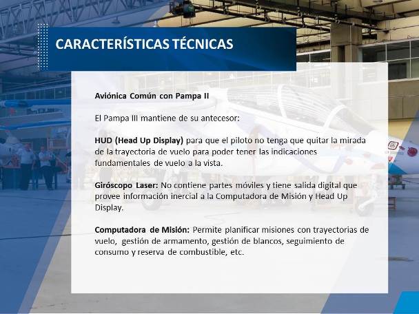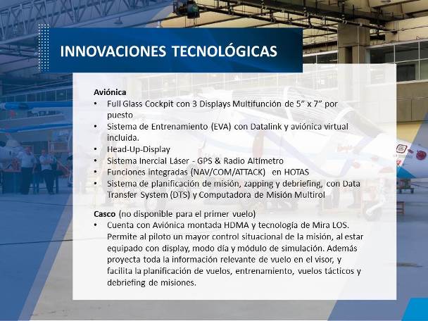 La modernización que recibirá el entrenador avanzado IA-63 Pampa, le permitirá a la FAA alcanzar la capacidad de adiestramiento necesaria para la formación de aviadores de combate con las exigencias actuales, así como también incorporar los medios necesarios para operaciones tácticas y se realizara la actualización técnica e industrial de los procesos de fabricación, además se incorpora las tecnologías de gestión de la producción, asimismo se moderniza el equipamiento e infraestructura necesaria para fabricar las piezas primarias aeronáuticas. (Luis Piñeiro, corresponsal de Grupo Edefa en Argentina)