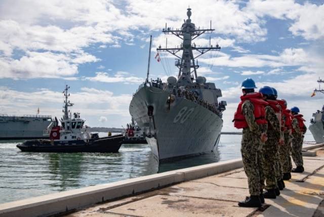 El destructor de misiles guiados de la clase Arleigh Burke USS Roosevelt (DDG 80) llegó a su nuevo puerto base, en la Base Naval de Rota, España, después de realizar una patrulla regional en el area de operaciones de la Sexta Flota (C6F) de Estados Unidos.