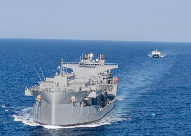 Fotografía: El USS “Hershel Williams”, en primer plano, seguido del USNS “Trenton”. (foto US Navy)