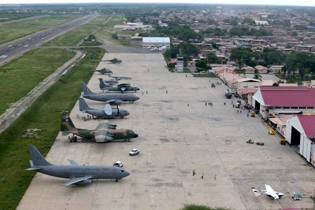 Las Fuerzas Armadas del Perú desplegaron 44 aeronaves. La Fuerza Aérea del Perú puso en escena, por parte del Grupo Aéreo Nº 8, nada menos que 2 Antonov An-32B Cline, 2 Boeing 737 )un serie 200 y un 528) , 2 Leonardo C-27J Spartan, 2 Lockheed-Martin L-100-20 Hércules y 1 Learjet 45XR. El Grupo Aéreo Nº 42 aportó 3 DHC-6-400 Twin Otter. La Dirección de Vigilancia y Reconocimiento (DIVRA) desplegó, principalmente para el monitoreo de las áreas afectadas y evacuaciones aeromédicas de alta prioridad, un Beechcraft TC-690B Turbo Commander, 3 Fairchild-Seawering C-26B Metro II y 1 Learjet 36.