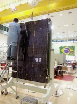 (defensa.com) El Generador Solar (SAG Solar array Generator) del satélite de recursos terrestres chino-brasileño (CBERS- 4) llega a China para incorporarse al cuerpo del satélite que está siendo ensamblado para su próxima puesta en órbita.