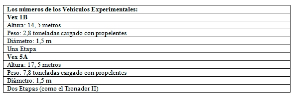 El nuevo paso del proyecto ya está en marcha, con el próximo ensayo del Vex 5A en el Centro de Control de Lanzamiento de Vehículos Experimentales, en Punta Indio. Se trata de un vehículo de dos etapas, que reproduce a una escala de tiempo acotada y progresivamente, eventos similares a los del lanzador Tronador II, que tendrá también dos etapas y los mismos propelentes (combustible y oxidante) en cada una. La parte superior del Vex 5A (denominada segunda etapa) tiene una configuración similar al Vex1B. Al nuevo vehículo Vex 5 se le incorpora otro segmento: la primera etapa, que lleva como combustible un kerosene denominado KC-1, que se está desarrollando especialmente para este proyecto, y oxígeno líquido como oxidante. Como parte del ensayo de la primera etapa del Vex 5A se prevé realizar un tipo de trayectoria con ascenso vertical (similar a la trayectoria del VEx1B), propulsando durante más tiempo y con un empuje mayor. También habrá instancias de pruebas sucesivas de control por toberas a reacción, separación de etapas, encendido de la segunda etapa y terminación del vuelo. Durante el ensayo se evaluarán en tiempo real los parámetros del vuelo, pudiendo decidirse la terminación de la misión según los resultados parciales obtenidos.