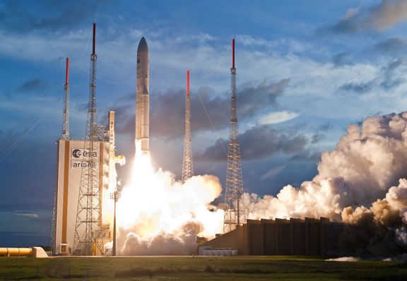 Ariane 5 ha despegado del puerto espacial europeo de Kourou con dos satélites de telecomunicaciones a bordo que suman 10.730 toneladas de carga útil, un nuevo récord para el cohete europeo especializado en cargas pesadas. El récord anterior, con alrededor de 10,5 toneladas, se produjo en febrero de 2013. Los dos satélites se han situado perfectamente en una órbita “de transferencia”, a partir de la que alcanzarán, mediante su propio sistema de propulsión, la órbita geoestacionaria. Los satélites situados en esta órbita, a 36.000 kilómetros de la Tierra, tienen la particularidad de desplazarse alrededor de nuestro planeta a una velocidad con la que pueden seguir la rotación de la Tierra exactamente.