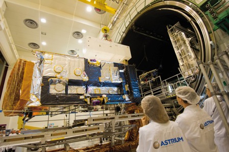 Foto: Alphasat I-XL una vez concluido el ensayo de vacío térmico.© Astrium / D Eskenazy / 2013