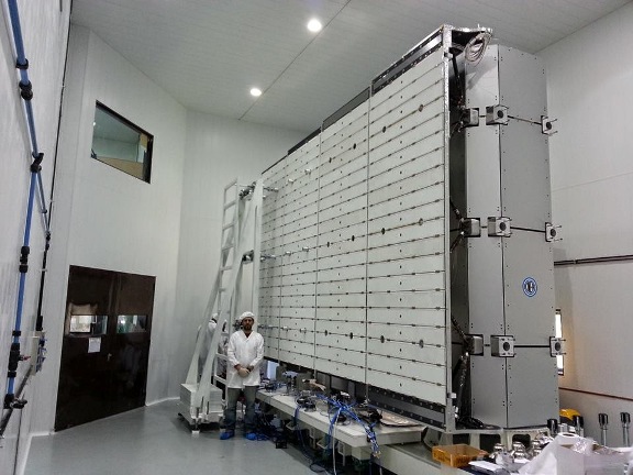 Una vez desplegada en el espacio, este instrumental tendrá una superficie de 35 m2, dividida en siete paneles, con el central fijo a la Plataforma de Servicio del satélite y dos conjuntos de paneles desplegables a cada lado.