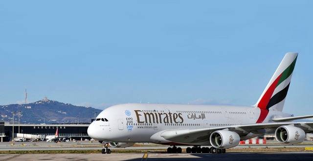 Fotografía: A380 de Emirates rodando en el aeropuerto de Barcelona.