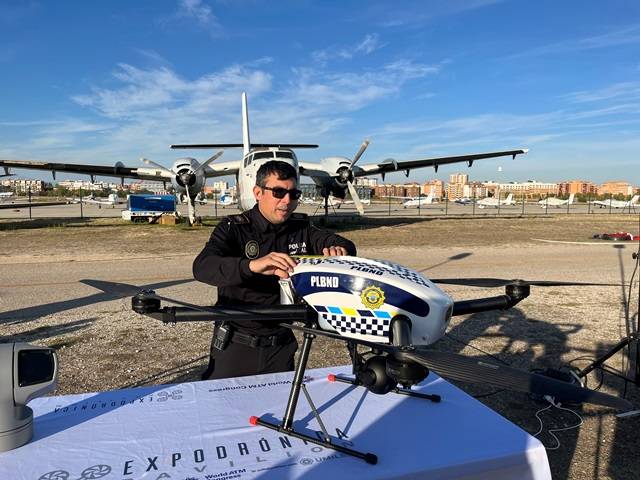 También participaron con demostraciones de vuelo la Policía Municipal de Madrid y la Policía Local de Benidorm. Las aeronaves no tripuladas constituyen una vasta muestra de las aplicaciones más innovadoras en el uso de drones. Apoyo médico y emergencias; logística y transporte; detección de incendios tempranos; seguridad perimetral de propiedades; vigilancia de infraestructuras como oleoductos y gasoductos o sistemas de gestión de vuelo con localización automática para entrega de paquetes. (David Herreros)