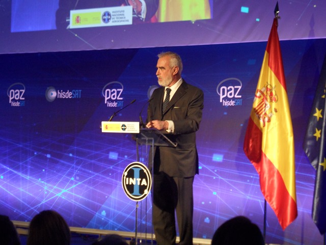 15 horas 11 minutos, del 21 de febrero. Sede del Instituto Nacional de Técnica Aeroespacial (INTA), en las inmediaciones de Madrid. Auditorio del Centro de Astrobiología (CAB). La ministra de defensa de España, María Dolores de Cospedal está sentada en primera fila, junto al secretario de Estado de Defensa, Agustín Conde, ‒recién llegado de la base aérea de Vandenberg‒, la secretaría general de Industria, Begoña Cristeto, el Jefe del Estado Mayor del Aire, general de Ejército Javier Salto Martínez-Avial, y el teniente general José María Salom, director general del INTA.