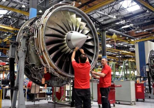 Fotografía: Mantenimiento en un motor RB211 en Iberia Mantenimiento.