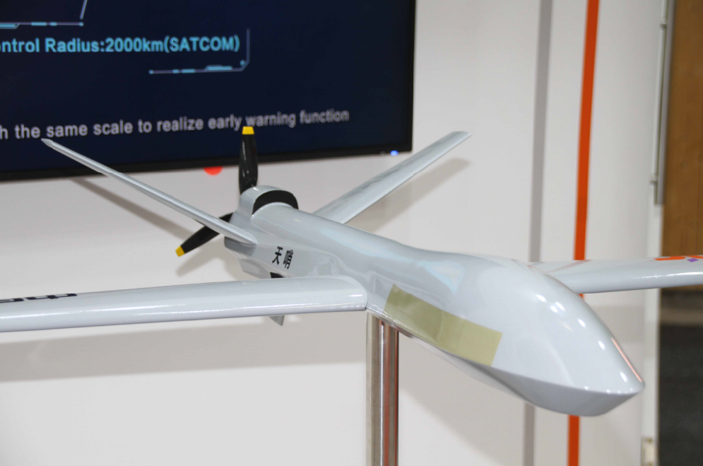 Cómo se observa, las líneas de este UAV chino recuerdan mucho a las del conocido Predator estadounidense. (Octavio Díez Cámara)
