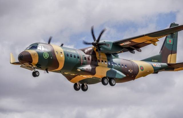 En la imagen, tomada por José Antonio Almarza, se puede ver el avión de Bangladesh pintado con un camuflaje de tres colores y ya con la codificación militar de Bangladesh S3-BRT situada en la cola, debajo de la bandera del país asiático, igualmente lleva pintado en la parte inferior del fuselaje la designación ARMY. Aunque como denota la bandera de España que lleva en la parte trasera y el número 170, que se corresponde con el de construcción de la Final Assembly Line (FAL) de San Pablo, vuela con codificación civil española. En el que será el vigésimo sexto operador del versátil transporte, se aprecian perfectamente al final del ala derecha el winglets que atestiguan que es de la moderna versión C295W.