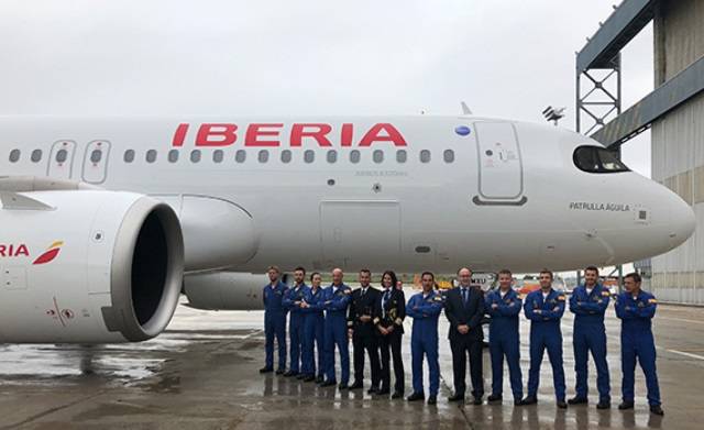 La aerolínea española Iberia cuenta desde este pasado miércoles con el primer avión de pasajeros Airbus A320neo del pedido de 20 que tiene en marcha. El avión ha sido bautizado como “Patrulla Águila”, la patrulla acrobática por excelencia del Ejército del Aire español.