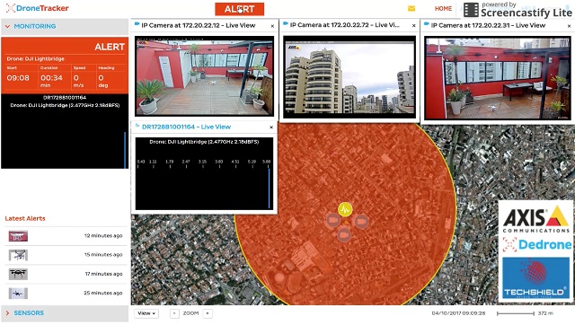 Las empresas Dedrone y Axis Communications han lanzado una tecnología capaz de detectar el uso de drones con fines delictivos, como la obtención de secretos industriales, la entrega de objetos para presidiarios y la violación de la privacidad. La demostración, realizada en octubre en la sede sudamericana de Axis, marcó el uso innovador de cámaras de vigilancia para identificar un drone acercándose a un edificio comercial, en combinación con la tecnología DroneTracker.