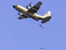 Desde Irán nos llega una más de esas extrañas imágenes de su aviación militar, en este caso vemos a uno de los antiguos C-130E Hercules que opera la Fuerza Aérea de la República Islámica de Irán lanzando por su rampa de carga bombas Mk.84, de 925 kilogramos de peso, en una zona de entrenamiento del ...