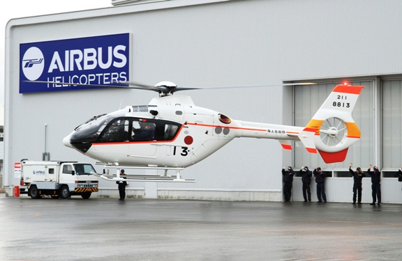 (defensa.com) Airbus Helicopters Japan entregó 3 TH-135 de entrenamiento a la Japan Maritime Self-Defense Force (JMSDF), en concreto a sus unidades 11ª, 12ª y 13ª. Se trata de una variante del EC135 T2+ adaptado par alas necesidades de ese cliente, destinados a sustituir a sus monomotores, para lo cual encargó 13, que empezaron a suministrarse en 2009 y están en operación desde 2011.