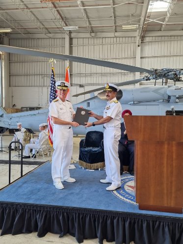 La transferencia formal de los helicópteros por parte de la US Navy a la Indian Navy se llevó a cabo en la Estación Aérea Naval de North-Island (San Diego-California), siendo aceptados por el Embajador de la India en los Estados Unidos, Taranjit Singh Sandhu. Además, de acuerdo con el protocolo de entrega, hubo un intercambio de documentación entre el vicealmirante Kenneth Whitesell, Comandante de las Fuerzas Aéreas Navales de la US Navy y el vicealmirante Ravneet Singh, Subjefe de Estado Mayor Naval o Deputy Chief of Naval Staff (DCNS), de la Indian Navy.