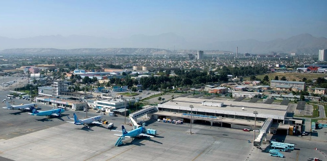 Se encuentra a 16 km. del centro de la ciudad, accesible por un amplio bulevar de cuatro carriles y permanentemente custodiado por un avión de combate Sukhoi Su-22 de la Fuerza Aérea afgana que se asienta como monumento a la entrada. Se divide en dos terminales civiles diferenciadas, una de ellas, que ya existe desde hace más de medio siglo y reservada para conexiones domésticas, tras múltiples ajustes y mejoras que se han ido produciendo a lo largo del tiempo; y otra, dotada de dos pasarelas telescópicas para acceso al exterior, para vuelos internacionales.