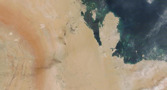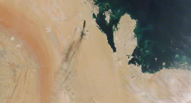 Fotografía: El humo que emana de las instalaciones saudíes visto desde el espacio (NASA Worldview)