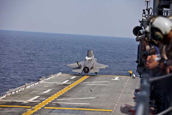 (defensa.com) El ministro de Defensa australiano David Johnson anunció que su Gobierno está estudiando el F-35B, la versión STOVL del F-35, para desplegarlo en los buques LHD de la Marina de guerra, basados en el Buque de Proyección Estratégica del astillero español Navantia. El ministro reconoció que aunque se trata de un avión más caro y con menor alcance, constituye una opción interesante para su país puesto que la cubierta de vuelo es suficientemente robusta para operar hasta seis de estos aviones simultáneamente.
