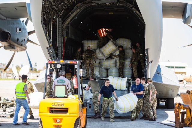 ·A400M de la RAF en fase de descarga de su ayuda humanitaria en Mozambique. (foto: RAF)