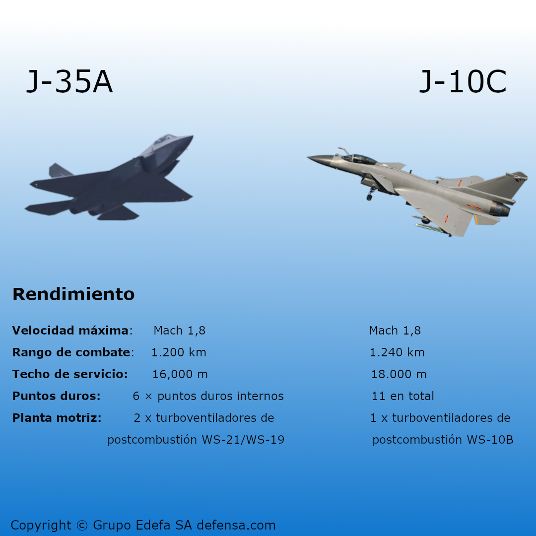 El J-10C desarrollado por la Corporación de la Industria Aeronáutica de Chengdu es un caza de cuarta generación y media y está diseñado para misiones multitarea, como superioridad aérea y ataques terrestres esta aeronave cuenta con un radar de exploración electrónica activa (AESA) que permite rastrear múltiples objetivos con alta precisión y puede transportar misiles avanzados como el PL-10 de corto alcance y el PL-15 de largo alcance, cuyo alcance llega a 300 kilómetros en su versión básica (145 km en la versión de exportación PL-15E).