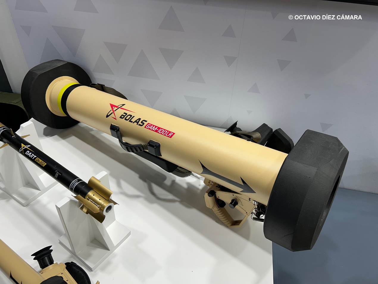 Vimos el concepto que llaman BOLAS GAM-100LR, que es una puesta al día de un diseño de lanzador de misiles contracarro que ya habían presentado hace un par de años con una denominación abreviada, pues ahora las letras LR (Long Range) dejan claro que se trataría de un sistema de largo alcance al que se estimaría una capacidad de volar contra objetivos a unos 4 kilómetros del punto de lanzamiento. Se ha mejorado también lo que es su módulo de puntería que es reutilizable y sigue la línea iniciada ya hace unos años con el Javelin estadounidense; se trata de un concepto algo mayor que un lanzacohetes pero también muy ligero y mucho más versátil.