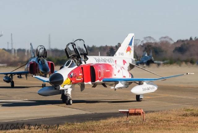 Fotografía: Uno de los dos F-4EJ especialmente pintado rodando en la base aérea de Hyakuri. (foto: José Luis Celada Euba).