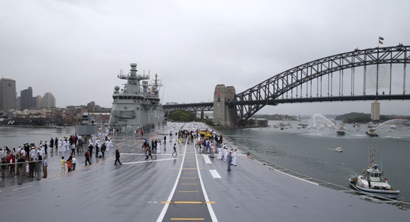 (defensa.com) El 26 de enero tuvo lugar el denominado Australia Day, la festividad nacional que conmemora la llegada al país del capitán Arthur Phillip. Este año el buque HMAS de la Royal Australian Navy jugó un papel principal en la celebración. Llegó a Sidney varios días antes y se posicionó en un lugar principal entre el Opera House y el Sydney Harbour Bridge, recibiendo durante el día festivo la visita de 200 autoridades, incluyendo al gobernador de Nueva Gales del Sur, su excelencia el general David Hurley. El gobernador realizó el tradicional acto de “saludo a Australia” en la cubierta del buque desde donde pudo contemplar cómo se dispararon 21 salvas desde un parque cercano a cargo de soldados del Ejército Australiano y mientras aviones de la Fuerza Aérea sobrevolaban la ciudad.