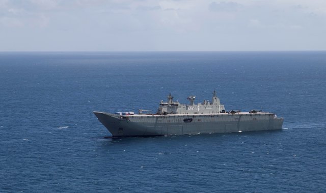 Fotografía: El HMAS Canberra en la costa de la isla de Koro, comenzó las operaciones anfibias el pasado 2 de marzo.