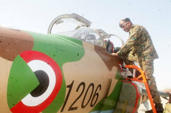 Un mando de la Fuerza Aérea de Sudan revisa la cabina de uno de los nuevos FTC-2000.