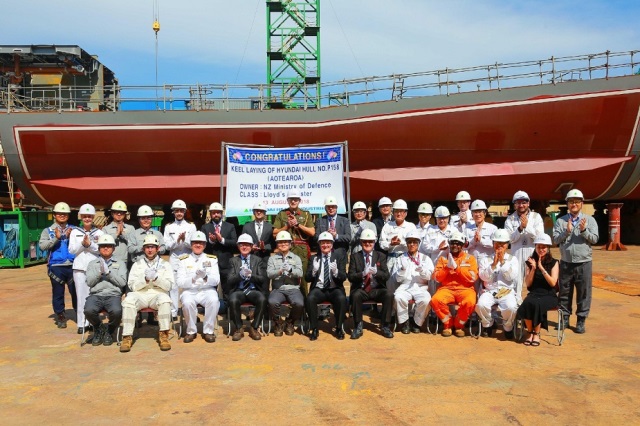 El pasado 13 de agosto tuvo lugar en los astilleros de Hyunday Heavy Industries (HHI) en Ulsan la ceremonia de puesta quilla del buque de reaprovisionamiento HMZNS Aotearoa, el que será el mayor buque militar de la Real Marina de Nueva Zelanda (RNZN).
