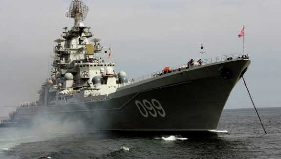 El crucero “Pedro el Grande” (proyecto 1114 Orlán) fue incorporado a la Marina de Guerra rusa en abril de 1998. Entre 2012 y 2013 realizó expediciones al Ártico. Junto al “Variag”, La presencia en el mar Mediterráneo de dos buques insignias de la Armada rusa ratifica la voluntad expresada por el jefe de la Armada rusa, almirante Víctor Chirkov, de evitar la más mínima amenaza contra las fronteras estatales de la Federación. Según Chirkov, a partir de este año las unidades de ese destacamento se irán reemplazando sobre la base de la rotación de buques de las flotas de los mares Negro, Báltico y del Norte, e incluso del océano Pacífico en ciertos casos.