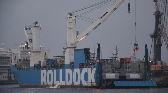 Carga de las tres lanchas en el buque semisumergible holandés Rolldock (Sefan Sauer/dpa/archive)
