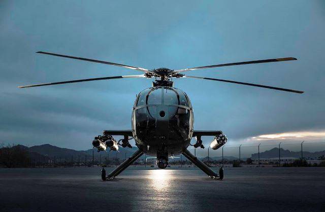 Dotado de un motor Rolls-Royce 250-C30, puede alcanzar los 282 km/h, siendo una de las últimas evoluciones del concepto de helicóptero ligero artillado iniciado con os OH-6 Cayuse de la década de los sesenta y evolucionado en la familia MD500. (José Mª Navarro García)