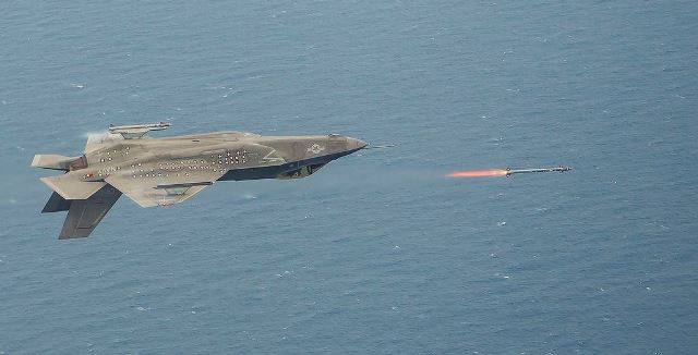 Fotografía: F35A realizando un lanzamiento de misil Sidewinder en posición invertida (Lockheed Martin)