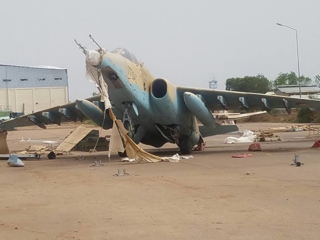 Otra víctima de la tormenta ha sido este Su-25 monoplaza. Foto: Tchad Actuel.