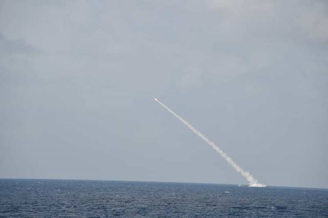 Lanzamiento de un misil Club 3M-14E hacia un objetivo terrestre (Ministerio de Defensa de Argelia)