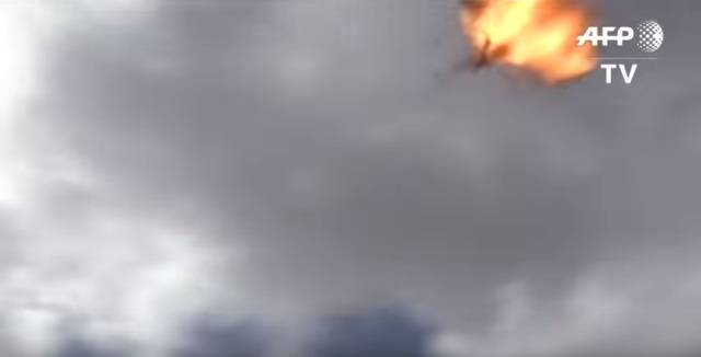 Fotografía: Momento en el que explota el drone (captura del vídeo de AFP)